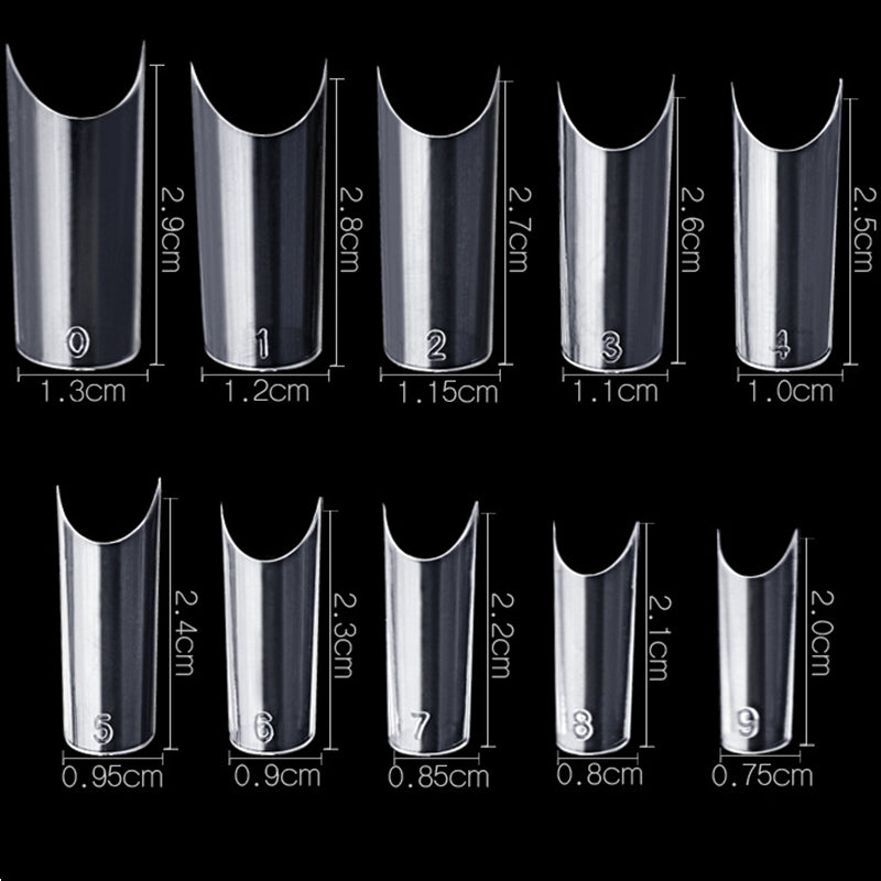 TD044 500pcs/bag False Nail Tip 10-Size(0-9) Clear ABS C-Shape Curved False Faux Ongles Tip Building Manicure Artificial Nail Fake Tip