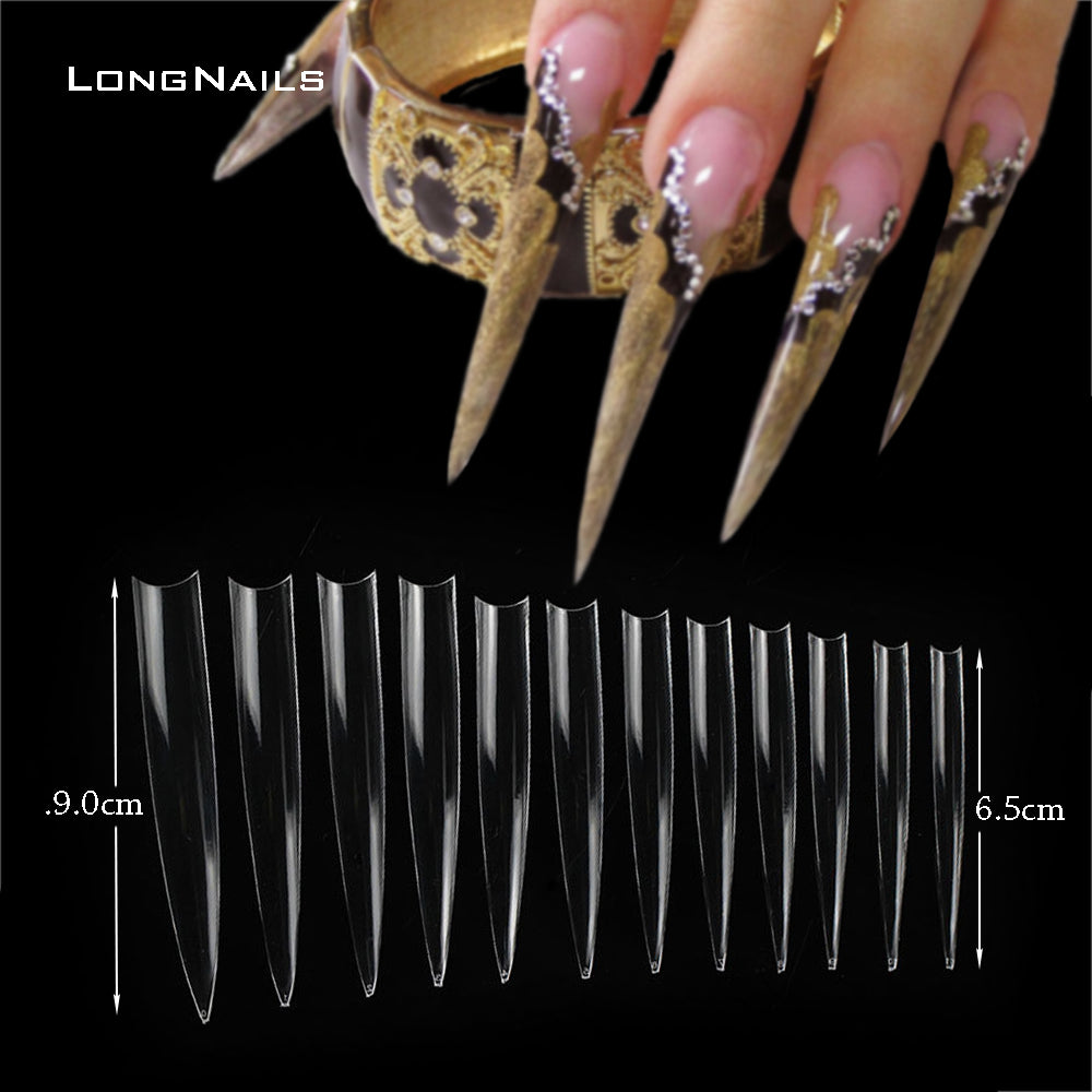 TD093 120pc/Bag Super Vampire False Tips XXXXL 9.0cm Half C-Curve Liveshow Fake Nails Clear Stiletto Salon Supply Nail Fake Tips 0-11