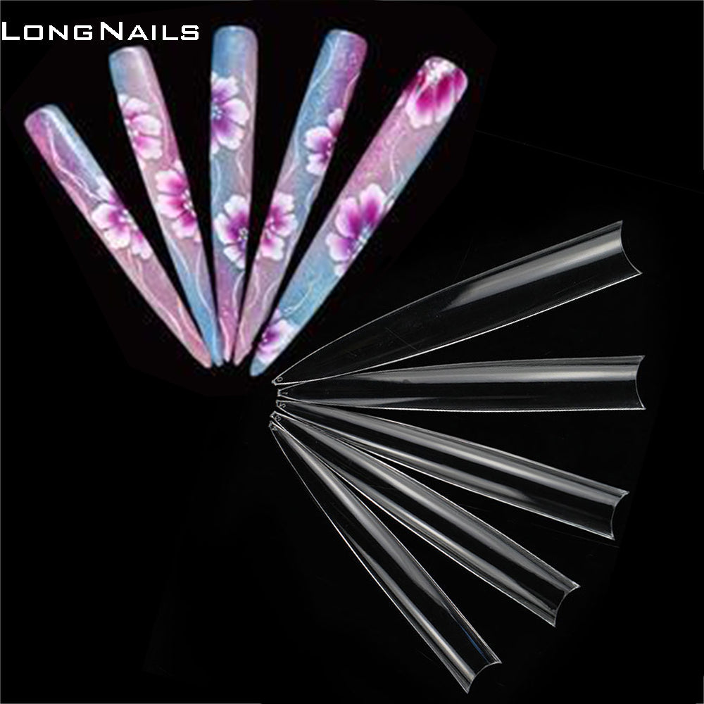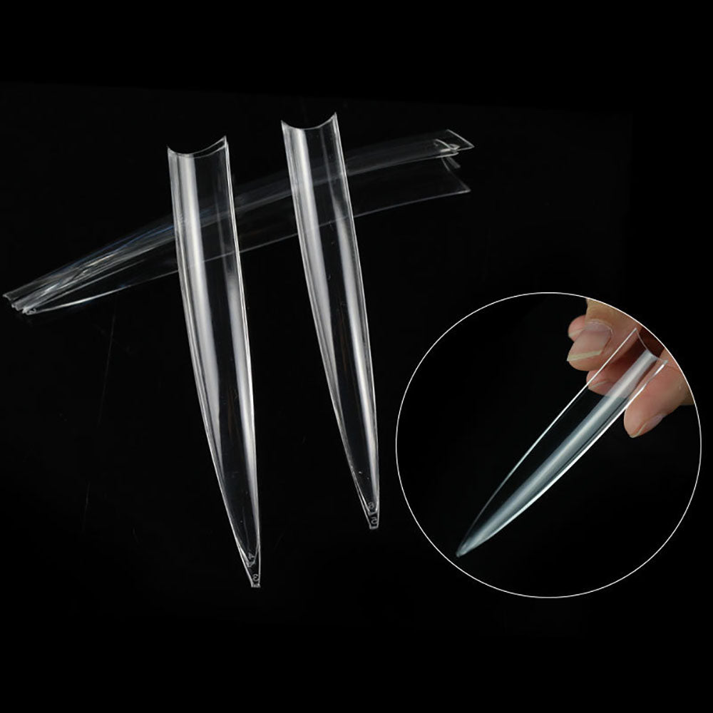 TD093 120pc/Bag Super Vampire False Tips XXXXL 9.0cm Half C-Curve Liveshow Fake Nails Clear Stiletto Salon Supply Nail Fake Tips 0-11#