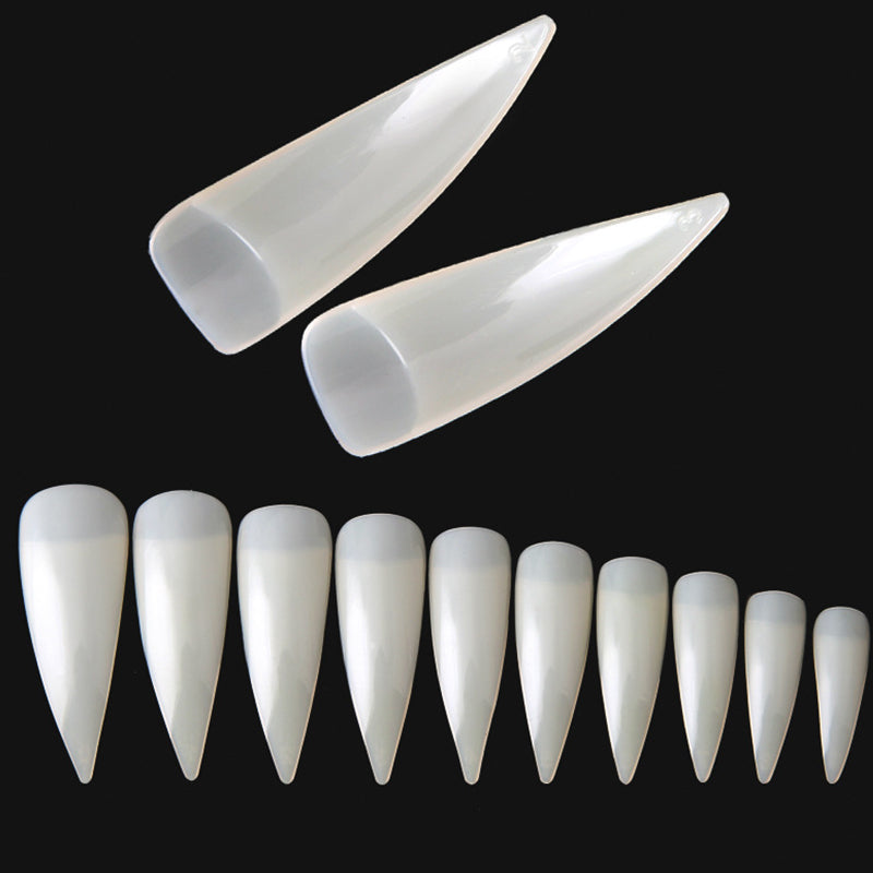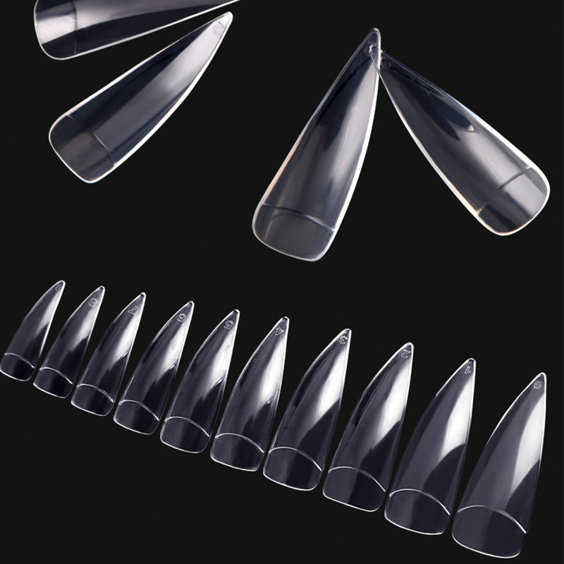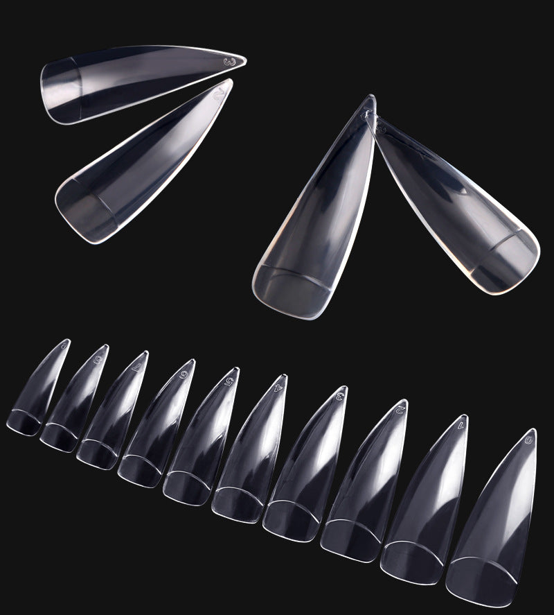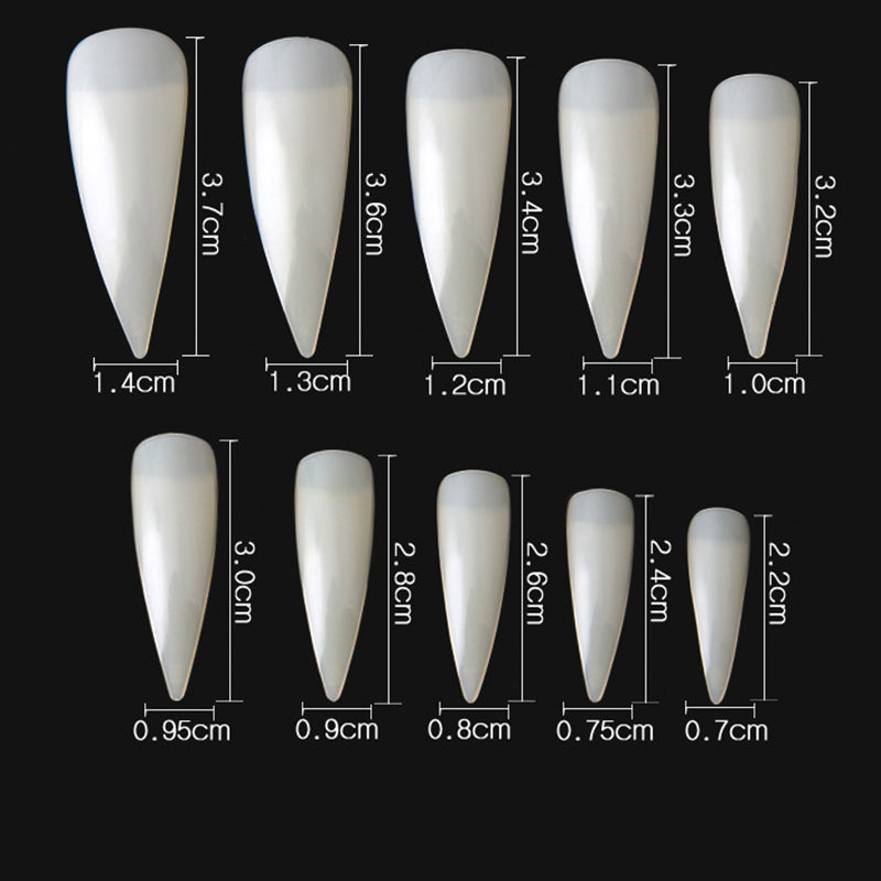 TD45 600pcs/bag Pointy Stiletto Nail False Tip Clear/Natural 3.7cm Long 10 Size (#0-#9) Half Nailart Sharp Salon Fake Tips #TD045td04